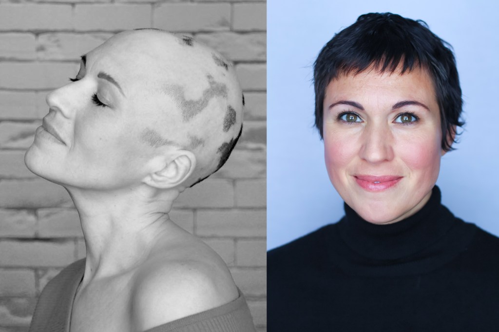 J’ai bien hâte de voir si mon cuir chevelu réagira bien à ce nouveau traitement! Je vous en redonnerai des nouvelles. Chose certaine, je suis heureuse de pouvoir faire avancer la recherche, moi qui ai tellement « chiâlé » contre le fait que nous sommes laissés à nous-mêmes, quand on fait de la pelade. Je reçois tellement de témoignages de gens désespérés, de partout dans le monde, via les réseaux sociaux… Si je peux « offrir mon corps à la science » pour contribuer au développement d’un traitement efficace, tant mieux! Solidarité avec tous les « peladeux » et « peladeuses » de ce monde! Comme je le répète souvent, VOUS N’ÊTES PAS SEUL! 👊🏼